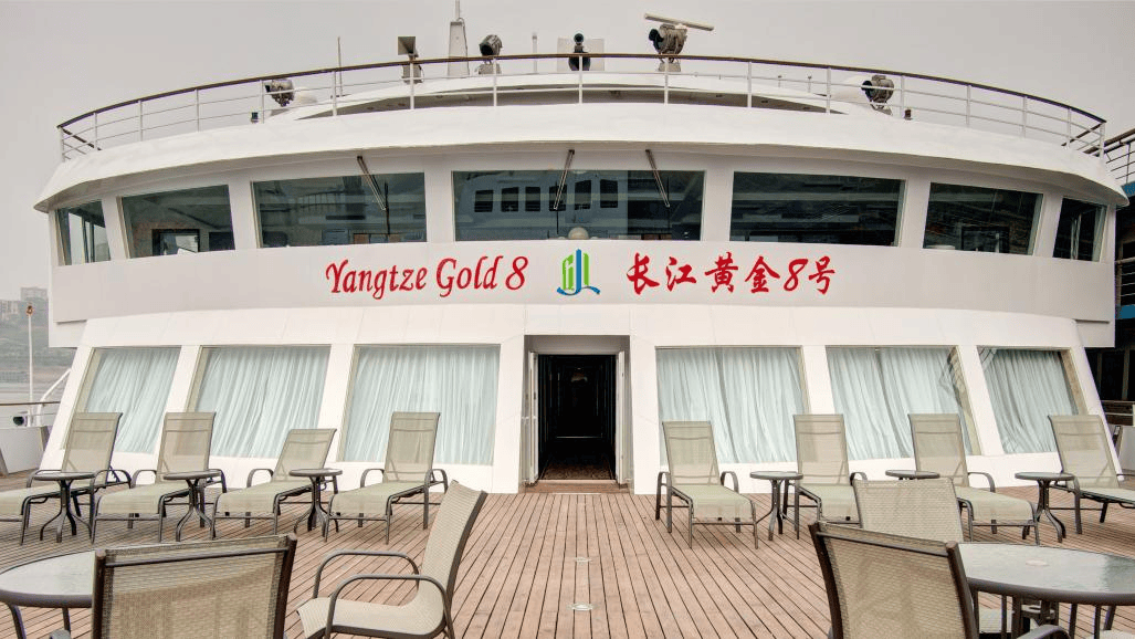 黄金八号隶属于重庆黄金游轮公司,是长江上新一代豪华游轮的代表。它全长近150米,载客量超过570人,拥有各类江景客房、豪华套房、总统套房等。船上配套设施一应俱全:恒温泳池、电影院、KTV、棋牌室、健身房、儿童乐园、观景甲板……堪称一座“移动的水上五星级酒店”。